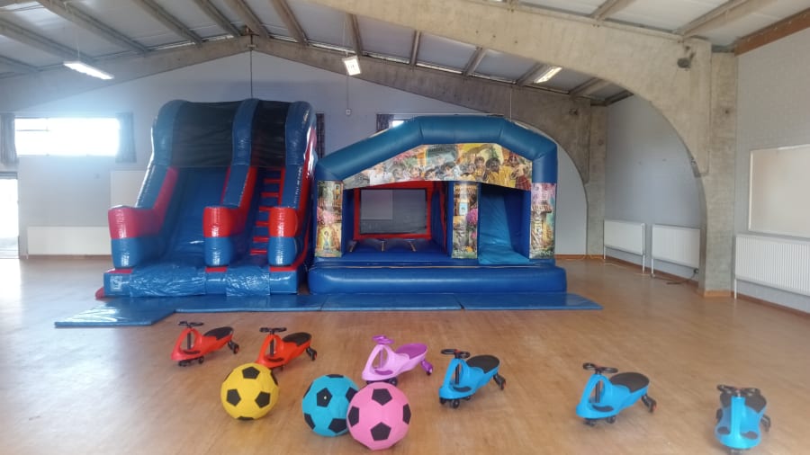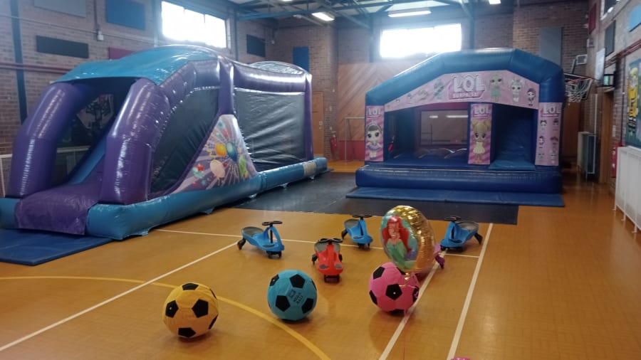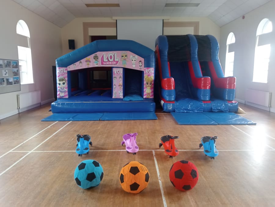Choose any two of the following inflatables + 4 wiggle cars and 3 mega soft footballs for ONLY £170